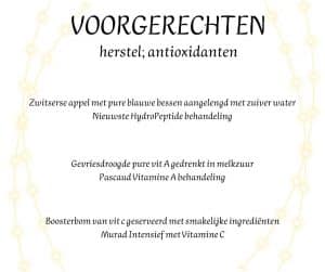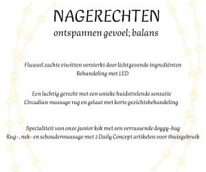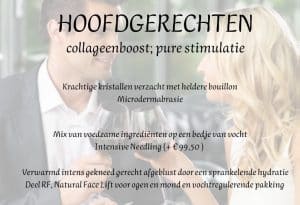 Voor elke gang kun je een keuze maken uit drie behandelingen. De behandelingen mag je in één keer ‘nuttigen’, maar dat hoeft uiteraard niet. Weet wel dat we na 31 januari onze culinaire periode afsluiten, dus gaan we ervan uit dat je alle gangen voor die tijd genuttigd hebt. Ook een superleuk idee als cadeau voor een heel bijzonder iemand!